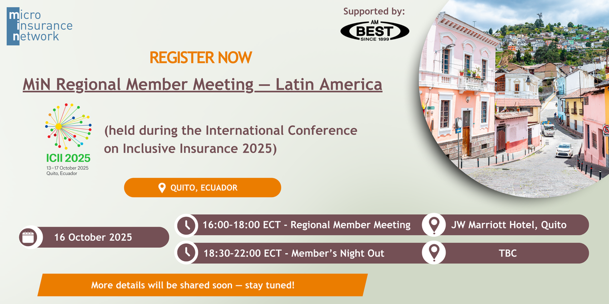 Nos complace invitar a todos nuestros miembros a nuestra Reunión Regional de Miembros - América Latina, que se celebrará en Quito, Ecuador (en el marco de la Conferencia Internacional sobre Seguros Inclusivos (ICII) 2025).