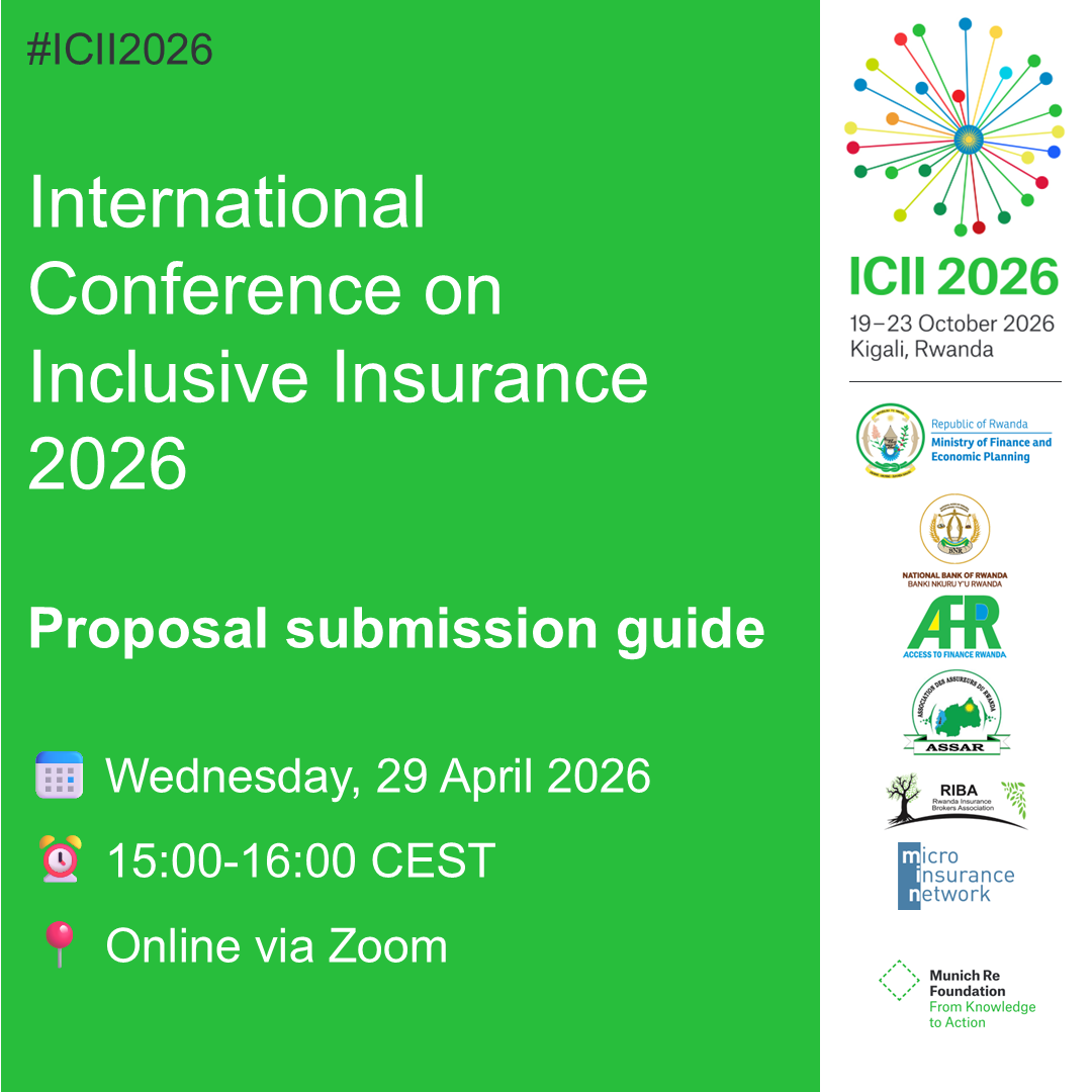 The conference will take place from 19โ23 October 2026 in Kigali, Rwanda and will be hosted by the Ministry of Finance and Economic Planning (MINECOFIN), the National Bank of Rwanda (NBR), Access to Finance Rwanda (AFR), Rwanda Insurers Association (ASSAR), and Rwanda Insurance Brokers Association (RIBA) in cooperation with Munich Re Foundation and the Microinsurance Network.