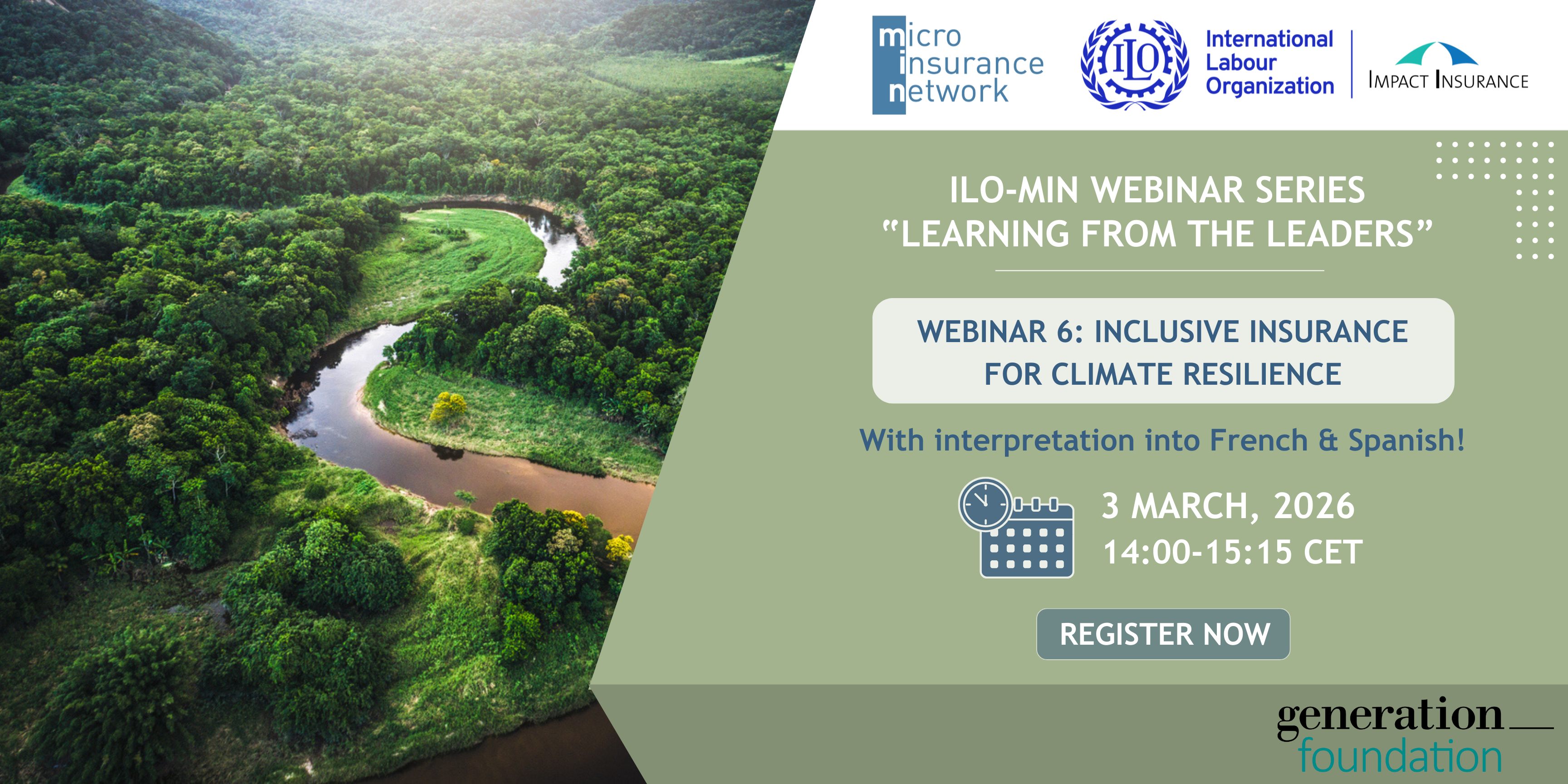 Join us for the final webinar in a series of six webinars designed to share key insights on improving the value and viability of inclusive insurance. This webinar series – Learning from the Leaders – is organised by the ILO’s Impact Insurance Facility and the Microinsurance Network (MiN) with the support of The Generation Foundation.